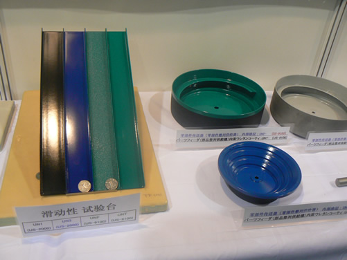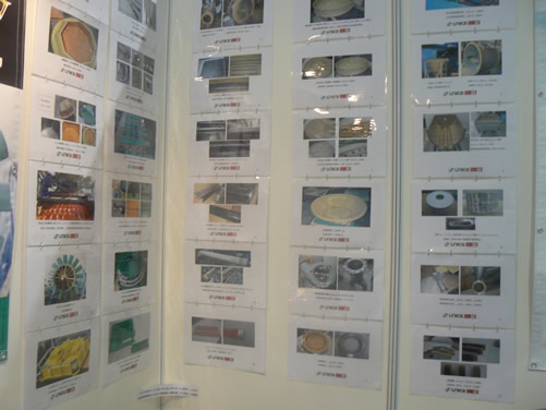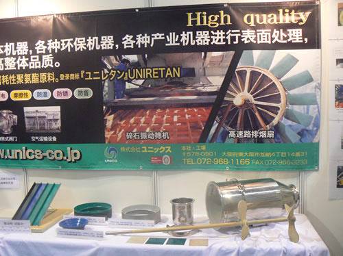 來自日本的株式會(huì)社尤尼科斯展示了其獨(dú)自己開發(fā)的廣泛用于提升振動(dòng)篩分設(shè)備篩網(wǎng)耐磨及防堵孔的聚氨酯涂層技術(shù)“UN1系列”。通過對(duì)振動(dòng)篩篩網(wǎng)做聚氨酯涂層表面處理避免了金屬和金屬間的直接接觸,防止了金屬磨耗以及磨耗的混入,大大降低了與粉體顆粒的摩擦所造成的篩網(wǎng)磨損。