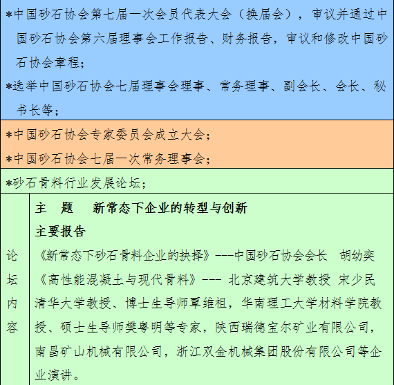 經研究,擬于2015年8月27-29日在西安市召開中國砂石協會第七屆會員代表大會(換屆),同期舉辦“砂石骨料行業發展”論壇。具體事項,通知如下:
