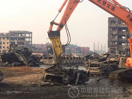 天津爆炸核心區 武警交通救援大隊利用破碎錘作業