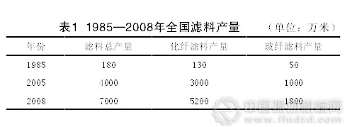 在濾料品種不斷創(chuàng)新的同時(shí),濾料的產(chǎn)量也在飛速發(fā)展。1985—2008年國內(nèi)濾料產(chǎn)量情況見表1。