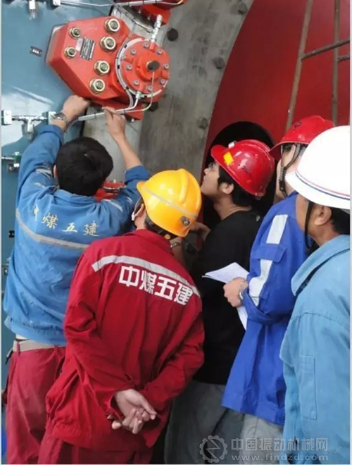 該提升機盤型閘裝置采用德國ABB設備。圖為項目部技術(shù)人員與德國廠家工作人員及甲方、監(jiān)理進行盤形閘調(diào)試,為下一步提升機試運轉(zhuǎn)作準備。