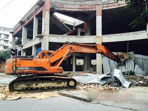 游大林說,在拆除工作開始之前,他們還做了許多準備工作,比如告知周圍人員回避,拉起警戒線提示路過群眾,并注意躲避高壓電線等等。“我們動用了4臺破碎機,23個工作人員,從今天早上8點半開始動工,大概下午4、5點鐘,就能把整棟樓移平。”