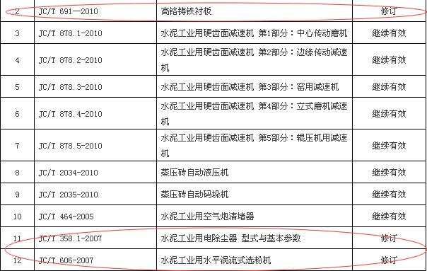 對標準的技術內容需作較大修改才能符合當前技術水平,滿足行業發展和市場需要的JC/T 691-2010《高鉻鑄鐵襯板》等3項行業標準確定為修訂項目。