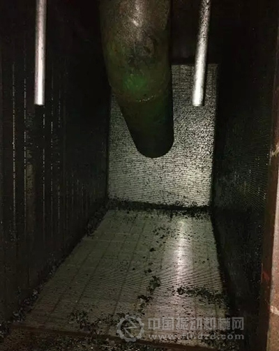 該裝置的入料管由以前的上升流管道分支一根管道引入。裝置內部利用篩板的過濾性,用2mm的脫介篩固定篩板(500mm*1010mm)做成五面的立體過濾網,過濾網距離箱壁有40mm的距離,形成中空帶,增加液體的通透性,即使瞬時入料量很大,也能保證及時過濾,避免出現冒液現象。過濾網的底板與水平面形成30°傾斜角,入料管的液體正好打到過濾網后壁的中部,部分液體通過過濾網進入出料管,過濾后的煤塊留在網面上;部分液體利用底板的傾斜角度,順勢將篩板上過濾后的煤塊沖到底板的下部,并經底板過濾進入出料管。出料管液體并入裝置下方的上升流管道,入合介桶。濾網上的煤塊事后由人工清理出去。