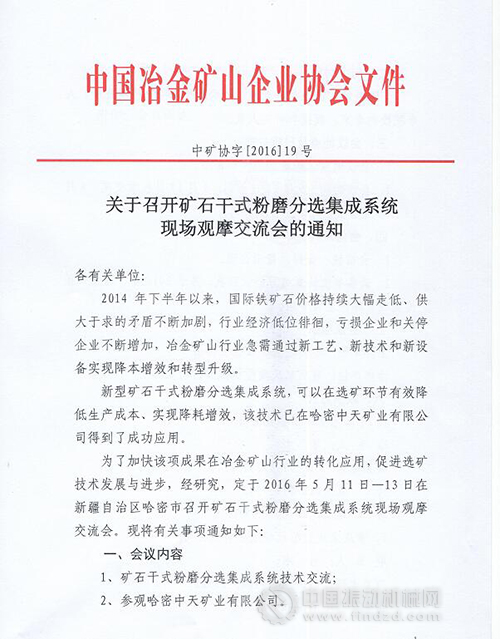 關于召開礦石干式粉磨分選集成系統現場觀摩交流會通知 ..