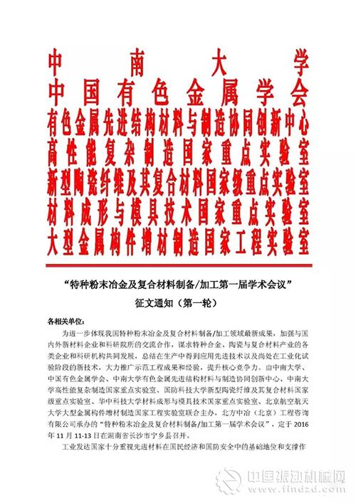 “特種粉末冶金及復合材料制備/加工第一屆學術會議” 征文通知(第一輪)   ..