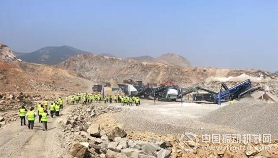 會后,參會嘉賓們實地考察了使用克林曼移動破碎篩分設備的日照虎山鎮(zhèn)采石場。在工地現(xiàn)場,嘉賓們現(xiàn)場參觀了克林曼移動式生產(chǎn)線對高硬度石料的破碎篩分處理效果。