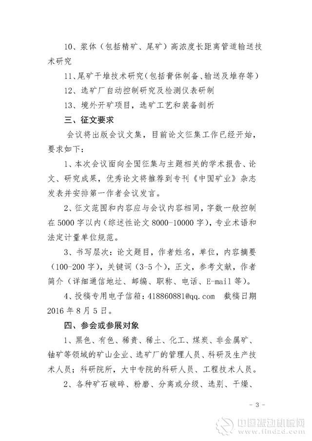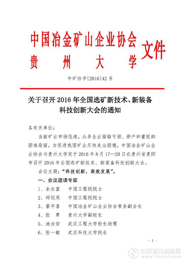 關(guān)于召開2016年全國選礦新技術(shù)、新裝備科技創(chuàng)新大會的通知 ..