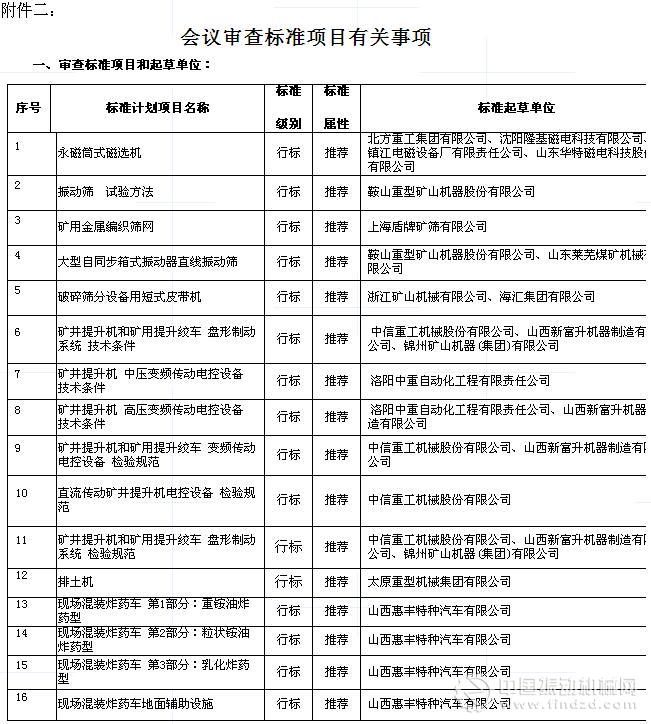 1、組織審查《永磁筒式磁選機(jī)》等16項(xiàng)標(biāo)準(zhǔn)計(jì)劃項(xiàng)目(具體項(xiàng)目詳見附件二),研討交流行業(yè)標(biāo)準(zhǔn)報(bào)批過程中的有關(guān)問題;