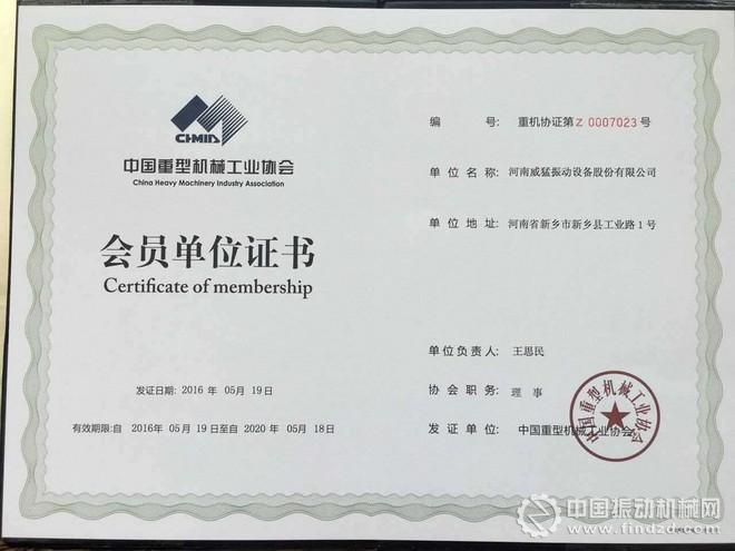5月19日,中國重型機械工業協會第七屆會員代表大會暨理事會在京召開。理事會單位代表、會員代表、分支機構秘書長和特邀代表等近210人參加了會議。經過與會代表投票評選,威猛振動成為該協會理事單位。