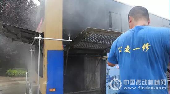 隨后,修理員師傅推來了他們新發明的噴淋設備,由剛才的“干式”除塵方式變成了“濕式”,高壓水霧的力量將塵土迅速掀干凈,而四周環繞的水霧又將灰塵包圍起來,再未出現塵土飛揚的情況。