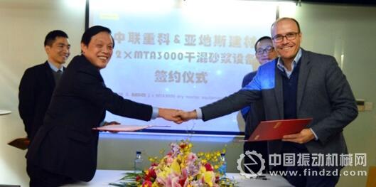 近日,中聯(lián)重科與亞地斯新材料科技(浙江)有限公司在上海簽署MTA3000干混砂漿生產(chǎn)線采購(gòu)合同。中聯(lián)重科副總裁殷正富先生、亞地斯中國(guó)總經(jīng)理 Andreas Oberecker先生出席簽字儀式。據(jù)了解,亞地斯方采購(gòu)的中聯(lián)重科塔式MTA3000生產(chǎn)線預(yù)計(jì)于2017年底投入生產(chǎn)。