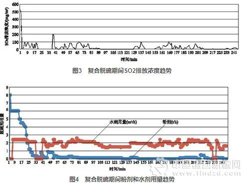 4)復合脫硫繼續投用:17:30時,繼續投運脫硫系統,粉劑0.12t/h,水劑2.1m3/h,檢測SO2濃度為5mg/m3。
