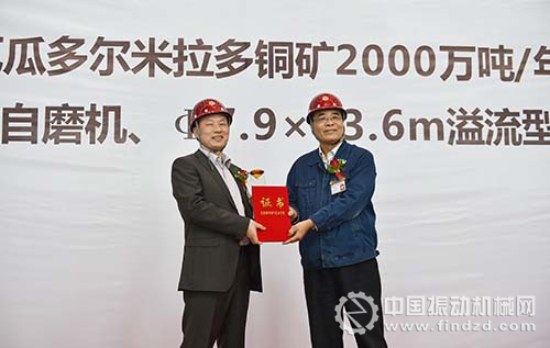 俞章法董事長在致辭中說,厄瓜多爾米拉多銅礦項目Φ10.97×5.4m半自磨機、Φ7.9×13.6m溢流型球磨機的試車交付具有兩大重要意義:第一,再次代表了中信重工在大型礦用裝備國產化的能力和大型礦山裝備國際化的水平;第二,代表了中信重工和銅陵有色兩個大型國有企業踐行國家“一帶一路”戰略的重大實踐。