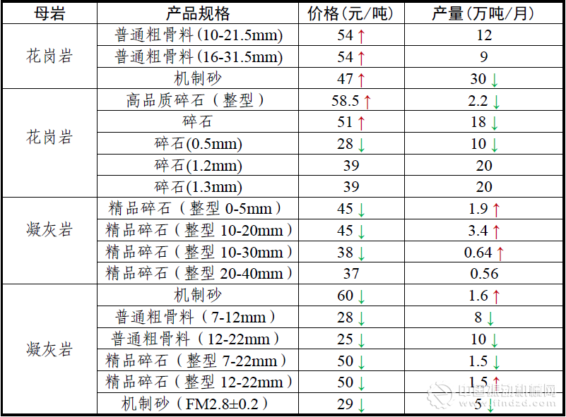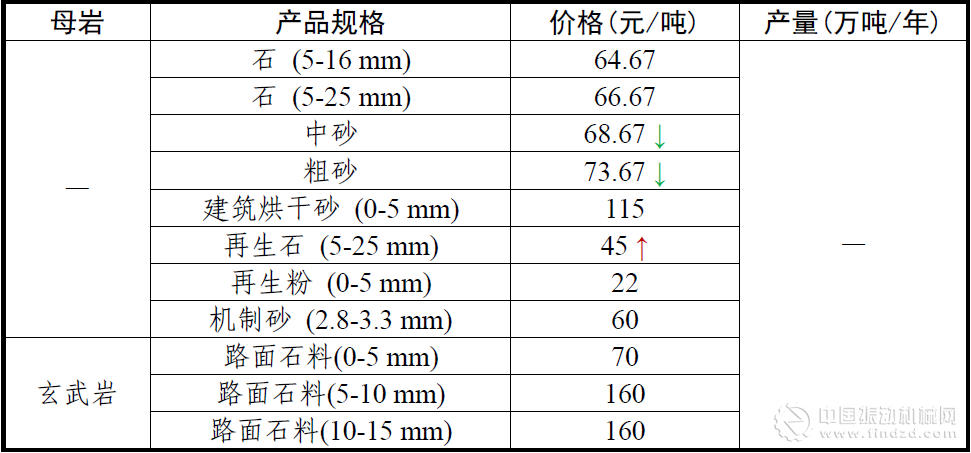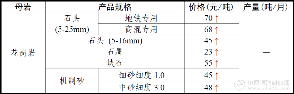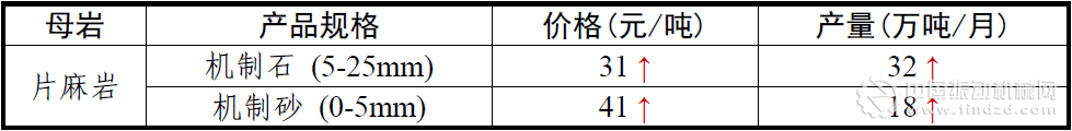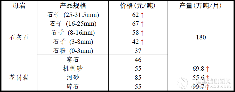 2017年4月全國砂石骨料價格和產量 華北地區
