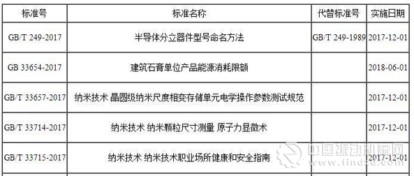 2017年5月16日,國家質檢總局、國家標準委批準標準砂、工業硅、絕熱材料等21項國家標準樣品及納米技術等334項國家標準,部分相關內容如下: