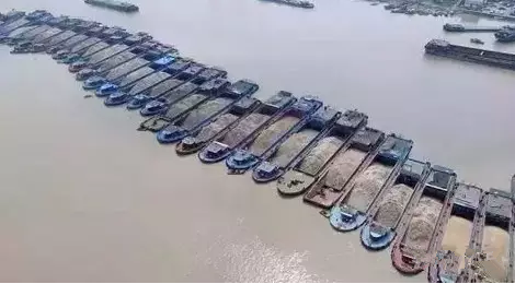 此外,6月19日,大量運輸河砂的船舶停泊在淮安洪澤區(qū)洪澤湖三線船閘上游水域等待買家。據(jù)悉,可能是最近淮安船閘水位走低,通航困難所致。