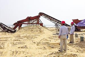 據介紹,為嚴格落實技術要求,施工方出動多部裝載機、推土機、挖掘機、皮帶機、振動篩等機械配合進行機械篩沙作業。但施工中發現,6毫米孔徑篩網篩沙作業較為順利,而2毫米孔徑篩網由于機械震動方式單一,加上天然海灘沙含水量較大,篩沙作業時篩孔極易堵塞,只能通過人工篩沙的方式進行。目前,每天約50名工人同時在場進行篩沙作業。