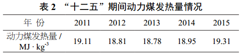 (2)動力商品煤發熱量呈階段性變化(見表2)。