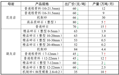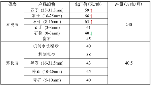 2017年7月份全國砂石骨料價格和產(chǎn)量