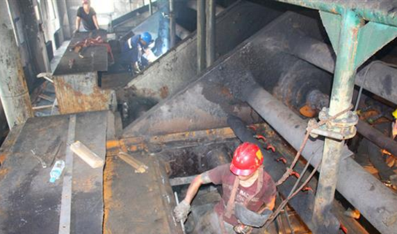 本次洗煤系統檢修項目包括磁選機滾筒、端蓋更換和精煤篩、450、350精煤皮帶檢修更換零部件等5大項任務。自16日洗煤系統檢修工作啟動以來,該礦安排安檢與業務科室工程技術人員現場跟班,嚴格落實安全技術措施與質量標準,進行跟蹤管理和驗收,做好勞動防護用具與安全繩索佩戴使用,確保人員安全施工。同時,進一步加強勞動組織,從基層單位調派電鉗工、氧焊等技術工種支援到各施工項目,確保按期竣工。干部職工抗高溫、戰酷暑,在關鍵時刻連續作戰、攻堅克難,全力以赴保障洗選煤系統檢修工作安全順利完成。