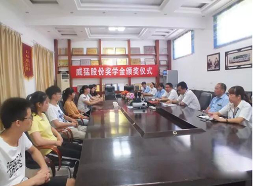 近日,河南威猛股份獎學金頒獎儀式在該公司榮譽室隆重舉行, 威猛股份公司員工子女及翟坡西村共8名學生獲得了此次獎學金。