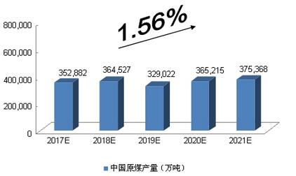 2017-2021年中國原煤產量預測