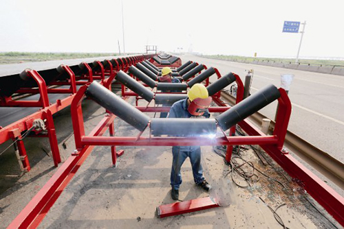 8月1日,在大豐港二期碼頭棧橋,工人們在修建皮帶輸送機。據悉,此次修建的皮帶輸送機全長5.9公里,運貨量每小時2500噸,預計10月底竣工,建成后將對碼頭基礎設施完善、提升港口吞吐量有著積極的推動作用。