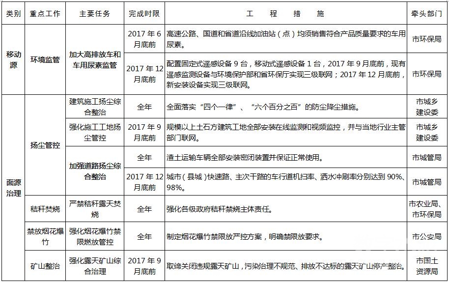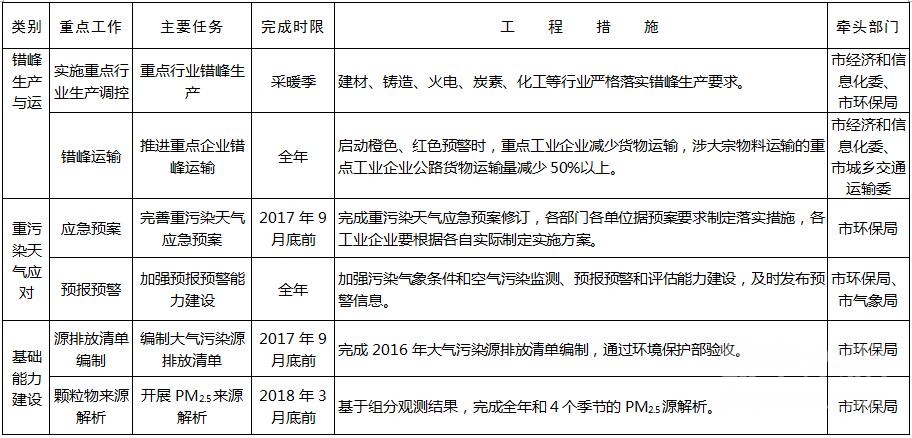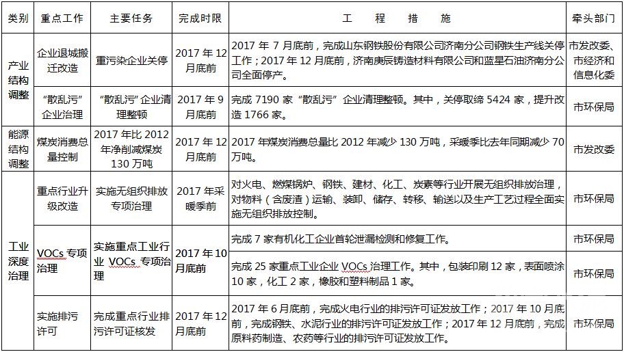 濟南市2017-2018年秋冬季大氣污染綜合治理攻堅行動重點工作任務表
