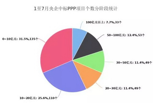 根據(jù)統(tǒng)計(jì),1-7月中國鐵建、中國中鐵、中國交建、中國建筑、中國電建、中國能建、中國中冶、中國化學(xué)這八家央企中標(biāo)PPP項(xiàng)目共計(jì)429個(gè),總投資額高達(dá)15397.74億元。