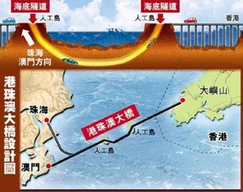 香港-珠海-澳門港珠澳大橋海底隧道開始路面鋪裝