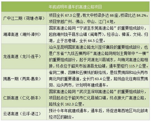 從廣東省交通集團獲悉,廣中江二期、揭惠一期、潮漳、仁新一期、龍連、云湛一期,6個項目550公里高速公路將陸續建成通車。