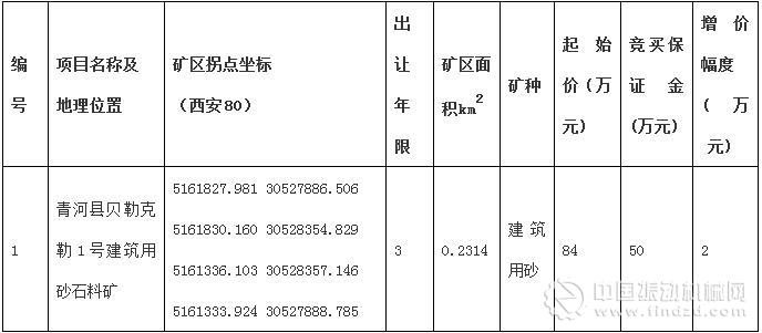 青河縣貝勒克勒1號建筑用砂石料礦采礦權出讓公告