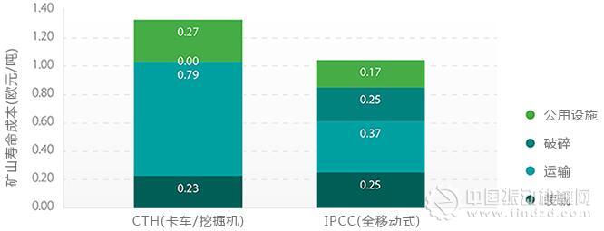 圖1:廢料輸送的傳統(tǒng)卡車運(yùn)輸(CTH)與全移動式(IPCC)解決方案的比較(按工作類別繪制)。