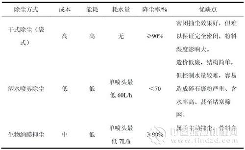 目前干式生產主要采用的除塵技術有以下幾種方式,見表1。
