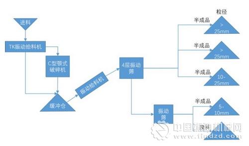 (2)為移動破碎站后序工藝增加重型篩分機可有效篩分含泥廢料,使骨料含泥量滿足產品要求。