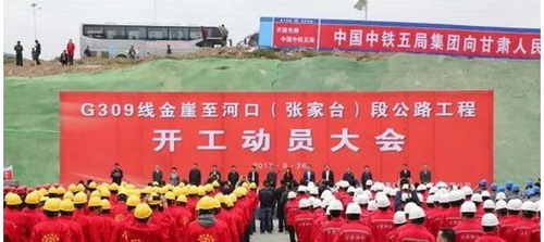 開工時間:9月26日,中鐵五局承辦的甘肅G309線金崖至河口(張家臺)段公路工程開工動員大會在甘肅省蘭州市舉行。