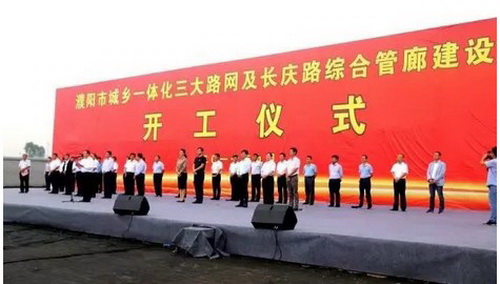 開工時間:9月16日,濮陽市城鄉一體化三大路網及長慶路綜合管廊建設項目開工儀式在河南省濮陽市舉行。