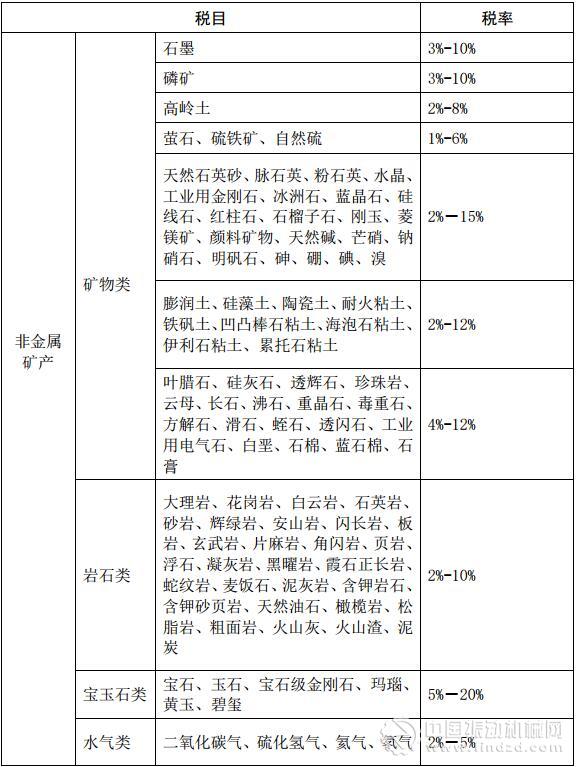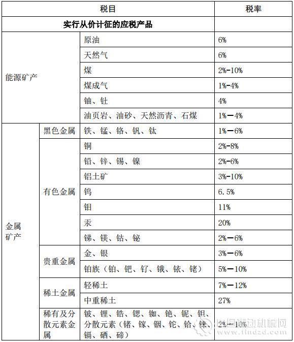 資源稅稅目稅率