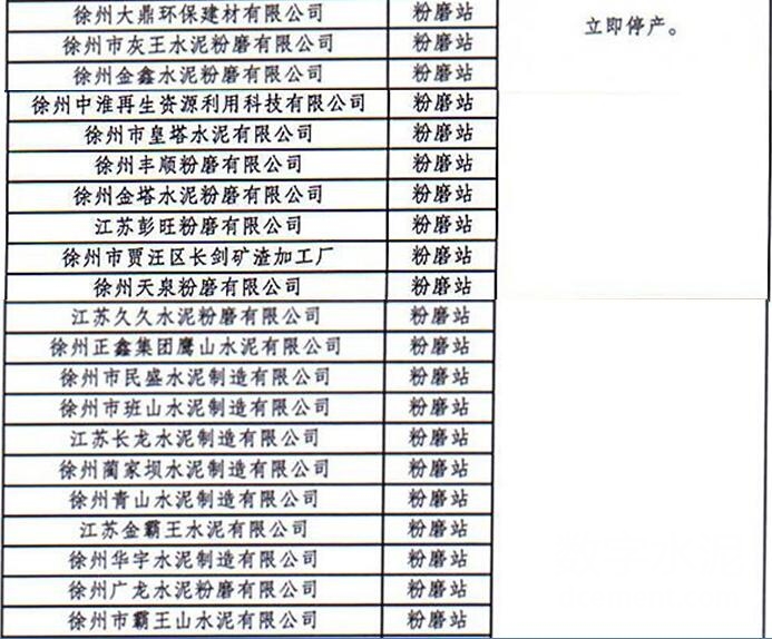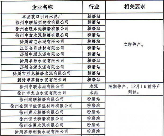 江蘇徐州環境治理:水泥粉磨企業全部關停(附名單)