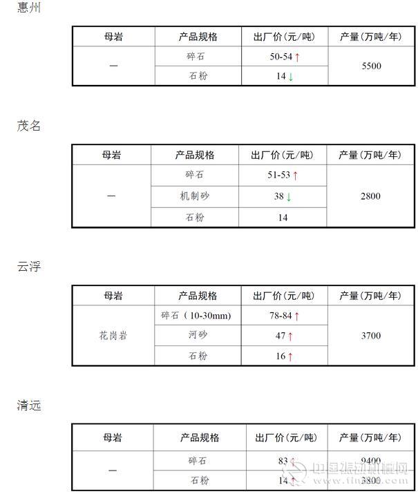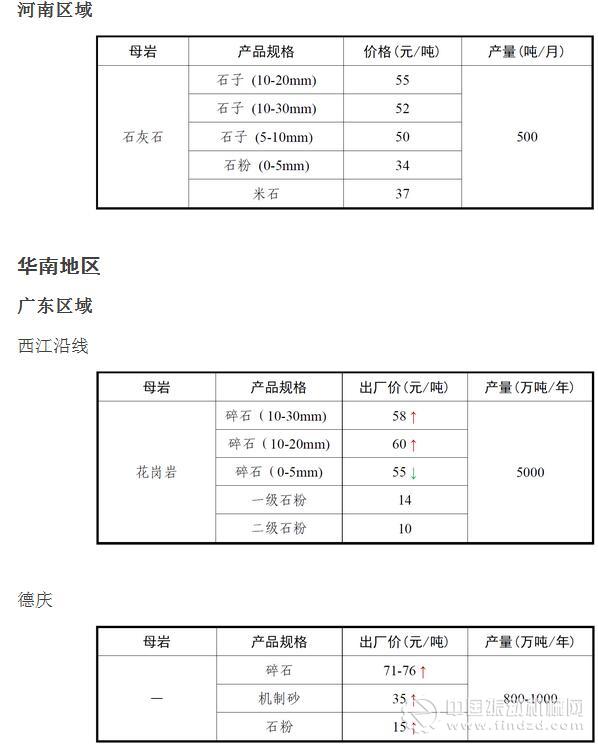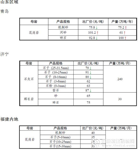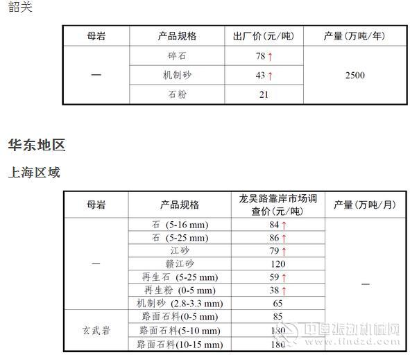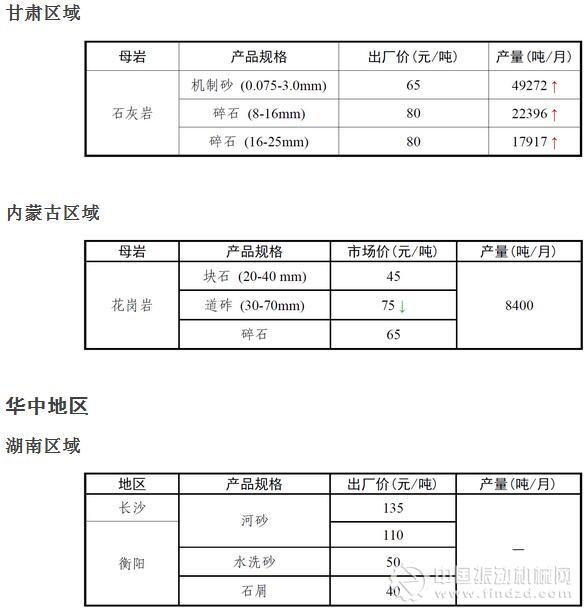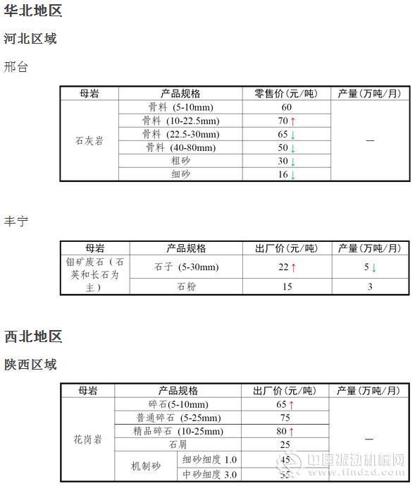 11月份全國砂石骨料價格和產量 ..
