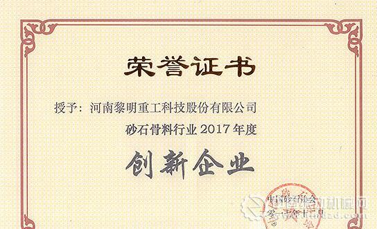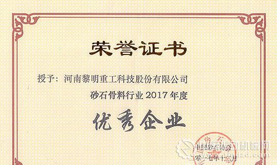 12月9日,第四屆中國國際砂石骨料大會在徐州召開,黎明重工與國內外砂石骨料行業專家、學者共同探討了礦業綠色發展新形式,并就產業結構深度調整加強了溝通交流。此次會議,黎明重工獲得2017年度砂石行業“企業信用等級評價”AAA級評價,同時入選全國砂石骨料行業“創新企業”和“優秀企業”。