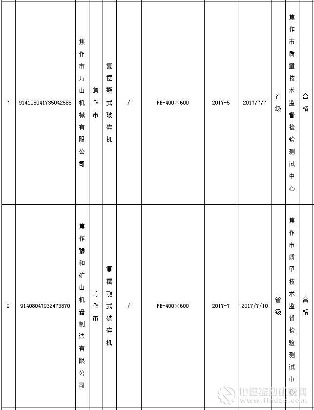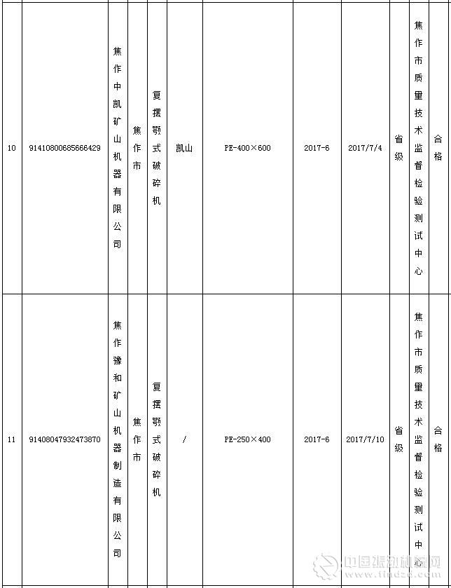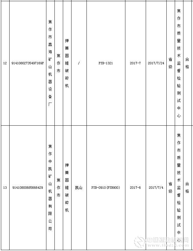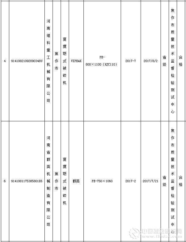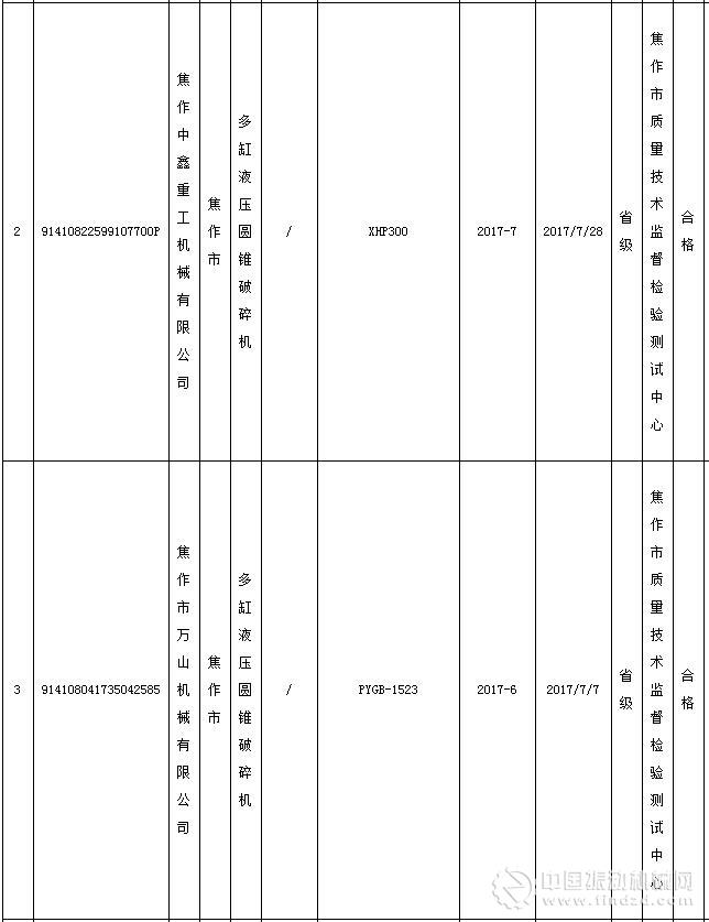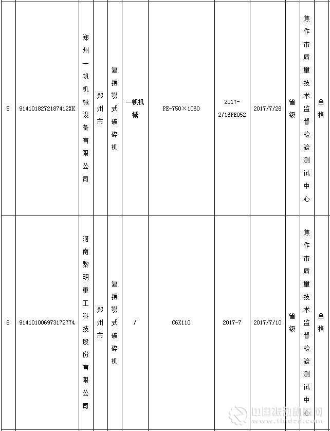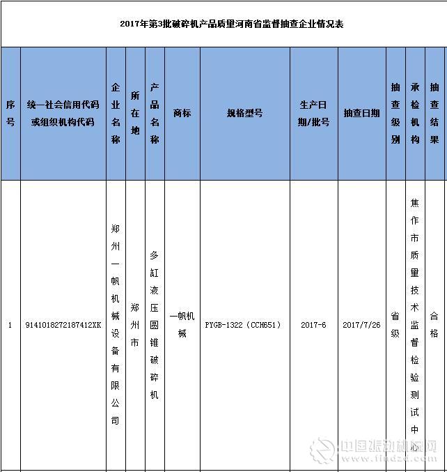 從河南省質量技術監督局官網獲悉,該局2017年第3季度對45種產品質量進行了監督抽查。其中,抽取了焦作、鄭州2個省轄市9家企業生產的13批次破碎機產品。經抽樣檢驗,13批次破碎機產品全部符合標準要求。 本次省監督檢查檢驗依據JB/T10883-2008《多缸液壓圓錐破碎機》、JB/T6988-2002《彈簧圓錐破碎機》、JB/T1388-2002《復擺顎式破碎機》及《2017年第3批破碎機產品質量河南省監督檢查實施方案》,對破碎機產品的基本參數、一般要求、外觀質量、主軸超聲波探傷、整機要求、安全衛生要求、空負荷試驗要求、電控箱技術要求、成套要求、零件質量、裝配要求、標志、隨機技術文件等項目進行了檢驗。