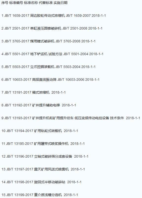 5.2017年4月批準振動篩、破碎機等礦山機械部分行業標準