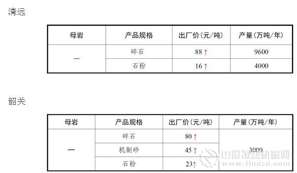 2017年12月份全國砂石骨料價格和產量