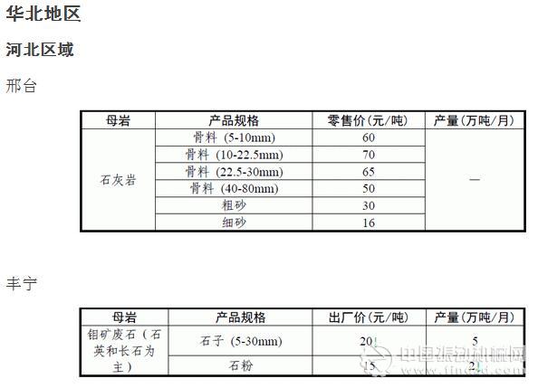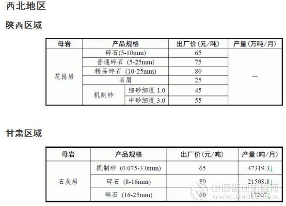 12月份全國砂石骨料價格和產量 ..