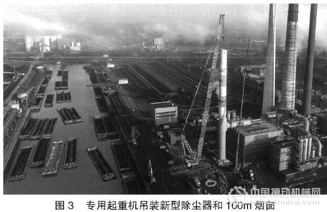 位于杜伊斯堡市北部的蒂森克虜伯(歐洲)鋼鐵公司杜伊斯堡-施韋爾格恩(Duisburg-Schwelgern)燒結(jié)建設(shè)也屬于新型布袋除塵器的施工內(nèi)容,400噸的龐然大物分成四段,通過船運(yùn)方式運(yùn)抵現(xiàn)場,使用專用起重機(jī)組裝藍(lán)色條紋煙囪。在此之前,已經(jīng)交付了新型除塵器中總重達(dá)數(shù)百噸的大型元部件,其中包括長度27m、直徑近6m的煙囪的扇形段鋼結(jié)構(gòu),抵達(dá)杜伊斯堡的港口,現(xiàn)場卸貨組裝。這種超高型煙囪也意味著必須對(duì)70m高的專用起重機(jī)的吊桿進(jìn)行加長處理。該新建煙囪,從杜伊斯堡-施韋爾格恩燒結(jié)廠現(xiàn)場外圍幾乎看不到,替代了250m高的磚塔結(jié)構(gòu)煙囪。