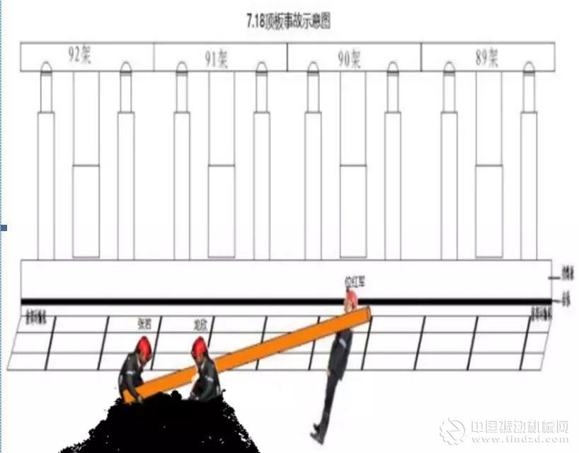 11時33分,三人抬著木梁走到92架處準備上梁時,92架處煤壁下部突然片幫(約1噸左右),將張若和龍欣沖倒,木梁將位紅軍帶倒。此時在93架和94架中間煤墻側的工人楊建軍聽到響聲后,扭臉看到張若半坐著,雙腿被片落的煤掩埋,木梁大頭在其右大腿上放著;龍欣雙腿也被煤埋著,上半身半趴著,木梁在龍欣背上偏右一點,楊建軍趕緊到木梁另一頭,看見位紅軍面朝機尾,側身躺著,頭部枕在采煤機行走輪齒軌上,木梁在位紅軍左肩脖子處壓著。楊建軍立即用工作面喊話器呼救:92架處煤墻片幫,3人被木梁砸傷。