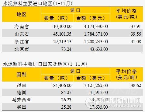 隨著國內水泥和熟料價格的上漲,水泥企業出口意愿有明顯下降,前11個月水泥和熟料分別出口798萬噸和383萬噸,同比增長5.33%和下降58.35%,熟料下降明顯,主要是因為自年初以來,熟料價格快速上升,同時由于多種限產因素,造成熟料庫存一直很低,惜售情況也導致熟料出口量明顯下降。 相反,水泥熟料進口量卻又明顯上升,截止到11月份,我國水泥熟料進口18.46萬噸,同比增長317%。國內較高的水泥熟料價格(部分地區超過500元/ 噸)且熟料企業惜售,導致部分粉磨企業不得不到海外尋求熟料資源進行補給,從目前看主要是來自越南的熟料為主,進口的省份集中在海南、山東和浙江。未來一段時間,水泥熟料的進口量預計將持續加快增長。