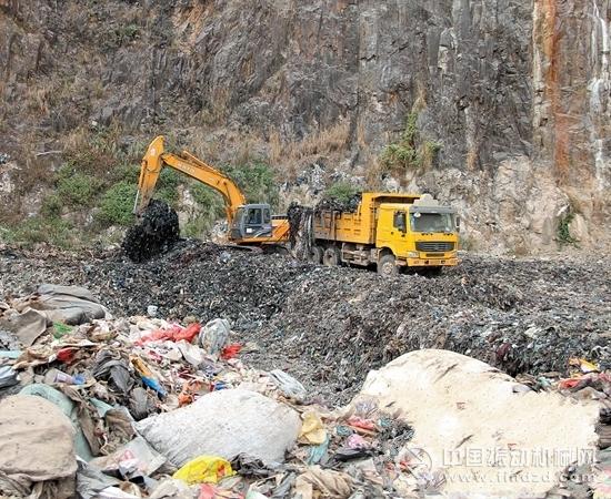 記者看到,車間處于這座“垃圾山”的山腳下,上面則是一個10多年的垃圾堆砌的“山頭”,只有一條小路需乘車而上。斜坡小路上,有垃圾車進出,“山頭”里,三四臺大型挖掘機正在作業。